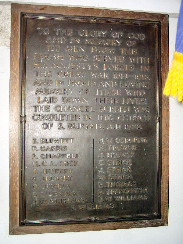 FROM ST BURYAN WHO GAVE THEIR LIVES