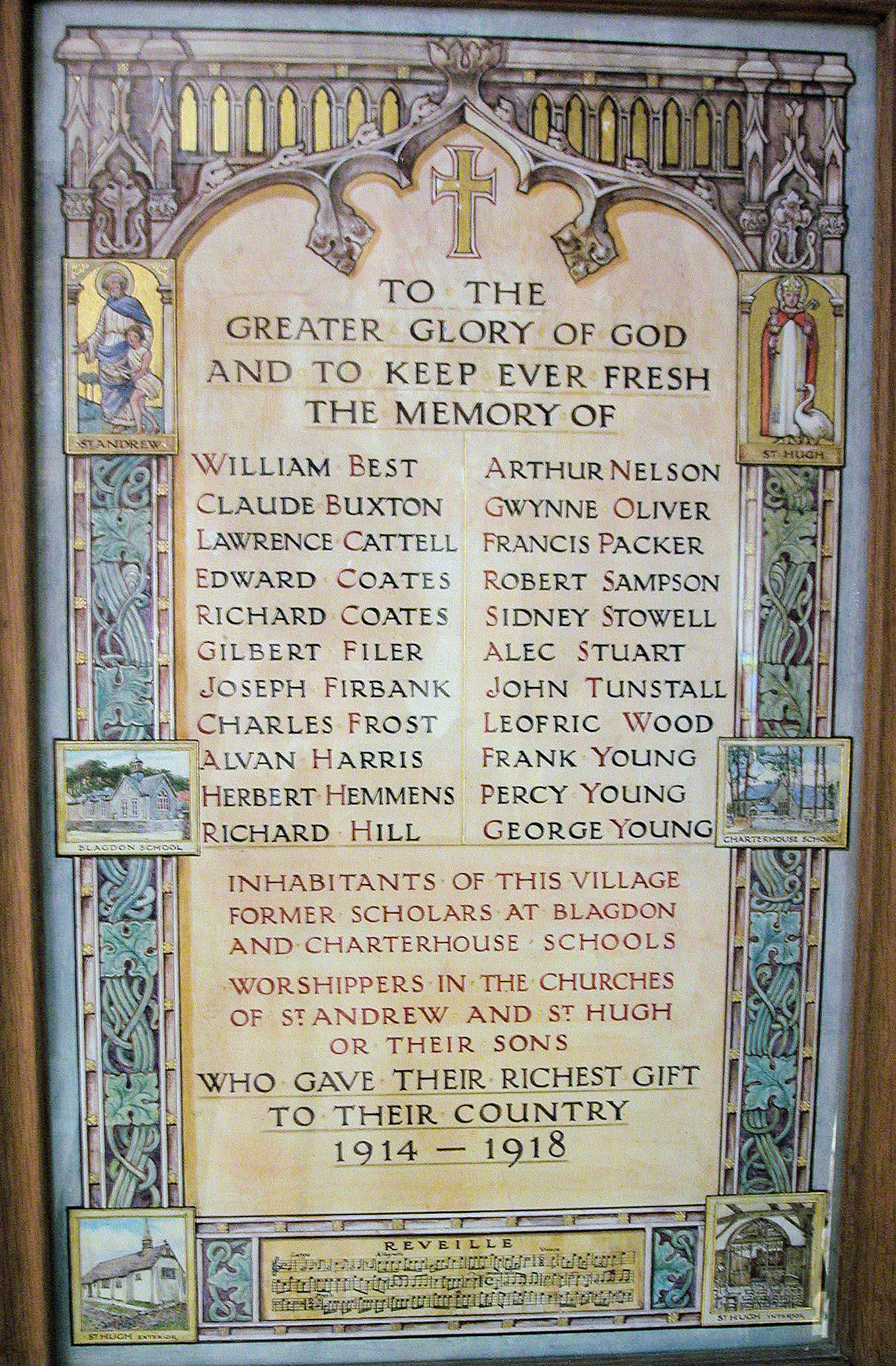 erected the screen in St Hugh’s Church, Charterhouse in his
