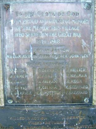 Serjeant 147536, 178th Tunnelling Company, Royal Engineers. He previously served as Private 7342, Somerset Light Infantry. He was killed in action on the 28th June 1916 aged 32, and is buried at Norfolk Cemetery, Becordel-Becourt, France. Soldiers Died in the Great War records that he was born and enlisted at Midsomer Norton. Son of George and Fannie Derrick of Clapton; husband of Lenora Derrick of Clapton, Somerset. Lenora Derrick remarried Frederick Derrick in 1920. Her son by this marriage is the only 1939-45 casualty listed. |