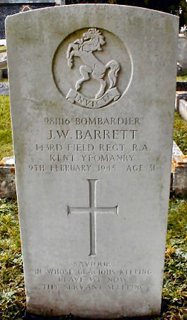 Gunner 1398003. ''B'' Bty., 11 (Honourable Artillery Company) Regt., Royal Horse Artillery. Died 2nd July 1942 as result of injuries received during El Alamein campaign. Age 26yrs. Buried in Tel-El-Kebir Memorial War Cemetery, Egypt. Son of William & Matilda WEBB, Jockey Club Cottages, Laceys Lane, Exning and wife of Catherine Louise WEBB. |