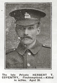 Private 28824 2nd Battalion Royal Berkshire Regiment-born Eversley-enlisted Reading- Killed in action 2nd April 1918 (on memorial shown as 21st March 1918)-Buried in Ham British Cemetery Muille-Villette grave I.A.16. |