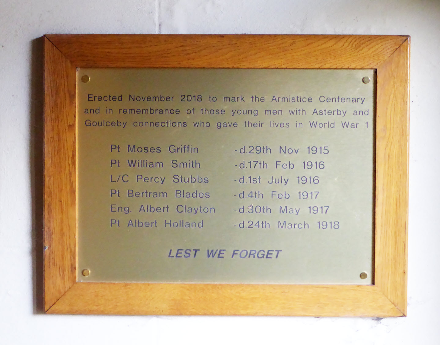 Methodist Church and (with his brother Ernest) on Tathwell War Memorial. |
