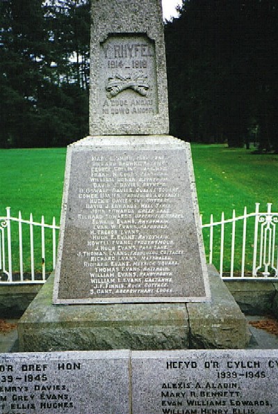 (Brithdir) Private 89615, 13th Battalion, The Royal Welsh Fusiliers. 38th Welsh Division. Died of wounds 29th October 1918. Aged 20. Son of Edward and Elizabeth Evans of 3, Micrion Terrace, Brithdir. Born in Dolgelley and enlisted Wrexham. Buried in Etaples Military Cemetery. F. 40. |
