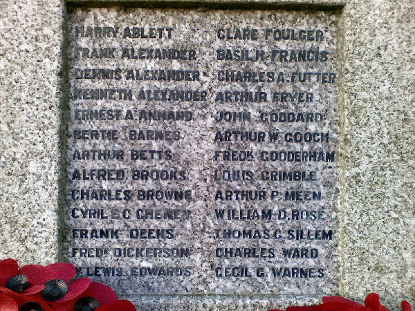 War 1 only, the World War 2 memorial is to be found within the church