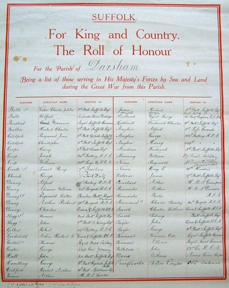Private 12898, 2nd Battalion, Suffolk Regiment. Died 11/04/1917. Born Darsham. Commemorated on the Arras Memorial |