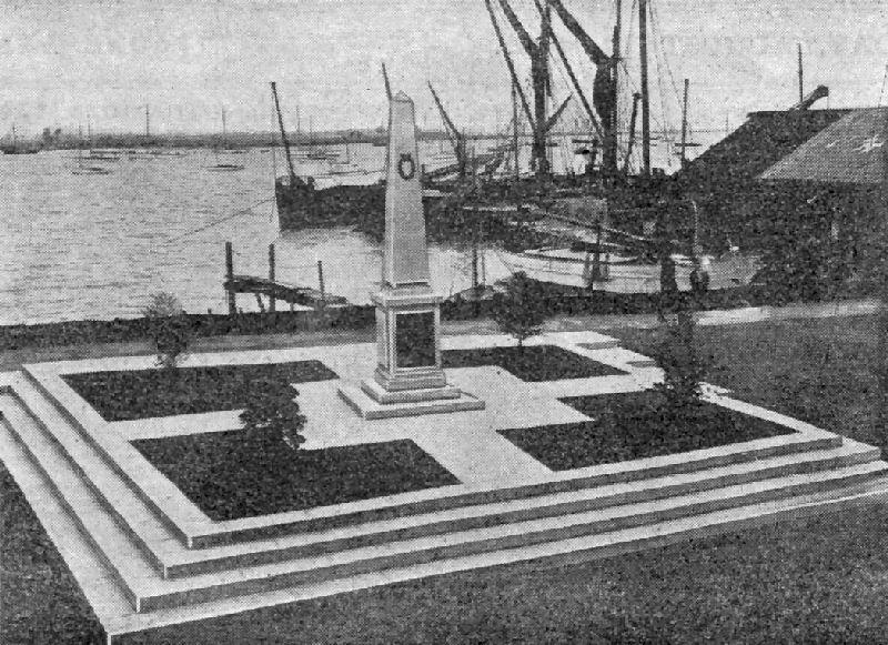 | The memorial which has been erected at Burnham-on-Crouch to the memory of the men from the parish who fell in the Great War was unveiled and dedicated on Sunday afternoon. It stands on a square island plot of ground opposite the Council buildings, between the High Street and the river. Through the good offices of Mr F. B. Pitcher, the services of Mr. E. Frank Atkinson, F.R.I.B.A., of Queen Anne's Gate, were obtained as honorary architect, and he prepared a design as proportionate as it was unique The site was all levelled to the Quay, and is approached from the High Street and the two sides by broad flights of stone steps. In the centre of the site is an obelisk, standing on a base, on two sides which appear the names the 98 men from the parish belonging to the Army, the Navy, and the Mercantile Marine, who lost lives. On the High Street and river fronts is laurel wreath in bronze, and the following inscription:—" To the memory of those from this parish who gave their lives for their country. 1914-1919." The names are cast on bronze, both this work and the laurel wreaths having been carried out at the Mildmay Ironworks, Burnham. Half the names appear on a plate on the High Street, and the other half on a plate on the river side. The full list is as follow: C. Aldis, W. J Aldis, E. Ambrose, P. F. Ambrose, G. J. Attenborough, H. Attwood, A. J. Barker, W. S. Barker, W. Barker. B. Barnard. C. G. Bourne, A. Bridge, C. E. W. Browne, F. W. Carter, F. R. Clark. W. F. Clark, A. J. Clarke, J. R. Clarke, W. Clow, C. A. Cook, W. G. Cooch, G. Cooper, Arthur B Croxon, Abraham B. Croxon, C. W. Cullem, J. F. Cundy, E. Cundy. A. R. Dilliway, G. G. Dilliway, F. W. Flick, H. Foot, G. Ford, K. T. Freeman, J. H. Gibson, B. C. Hammond, A. J. Hawkes, G. A. Hawkes, W. C. Hawkes, S. Hawkins, E. Hitchen, L. W. Hudson, S. Hart, H. Humphries, H. Jennings, H. S. Larter, G. U. Laws, R. J. Lipscombe, H. W. Livermore, T. Mapes, C. W. Mitchell, H. A. Moreton, A. C. T. Moss, W. Nicholls, S. Newman. R. A. Norris, A. G. Nunn, F. L. Osborne, J. J. Page, J. N. Page, T. Parchment, J. D. Parchment, C. J. Partridge, F. Perry, H. C. Player, C. E. Prior, F E. Ralph, A. J. Ravment, S. E. Richmond. A. Robinson, S. G. Sains, A. E. Sains, G. Smart, F. J. Smith, S. T Smith, A. J. Spooner, F. Alfred Stanes, Arthur Stanes. W. T. Stebbings, F J. Thomas, A. L. Trussell, W. Trussell, G. H. Tunbridge, H. I. Tunbridge, L. Turpin, E. B. J. Walter, S. C. Weedon, G. S. Wessell, A. Whiting, E. Whiting, J. F. Whiting, J. W. A. Willett, A. W. Witney, F. H. Woolf, H. Yardley, W. Yardley. IMPRESSIVE SCENE Probably the biggest crowd which has ever assembled in Burnham was present at the unveiling ceremony. A special stand was erected for the accommodation of the relatives of the fallen men, and the V.A.D. detachments. The Boy Scouts lined the memorial on the High Street side and the Girl Guides on the east side. The local Territorial detachment and a large, number of ex-Service men mustered at the Drill Hall, and marched to the site, under the command of Lieut. L. J. Dilliway, and headed by a detachment of the local coastguard and the combined bands of the Mildmay Ironworks and the Salvation Army. The Territorials and ex-Service men occupied the space at the west of the memorial, and the band, who led the singing of the hymns, formed up on the Quay. The service began with the hymn “O God our help in ages past,” after which the Rev. E. L. Lewis, Congregational minister, read the first seven verses of the 21st chapter of Revelations. The Lord's Prayer followed, and then Mrs. Leslie, who for the past six years has carried out wonderful work among sick disabled soldiers in Burnham and in London, pulled the string which held the national flags over the memorial, and so unveiled it. A beautiful hymn was sung, beginning |