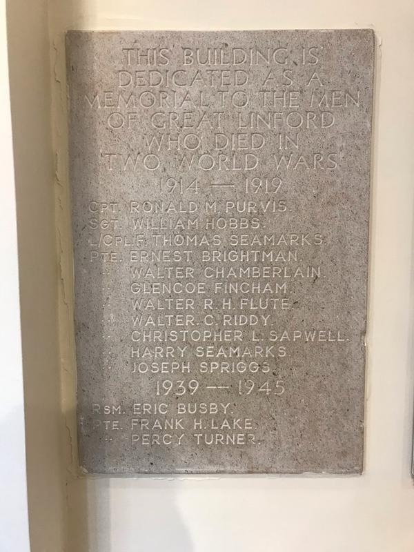 Great Linford sent 100 men to the war, and in addition to the tablet