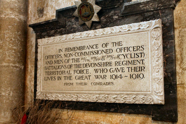 Exeter Cathedral there are many individual commemorations in various
