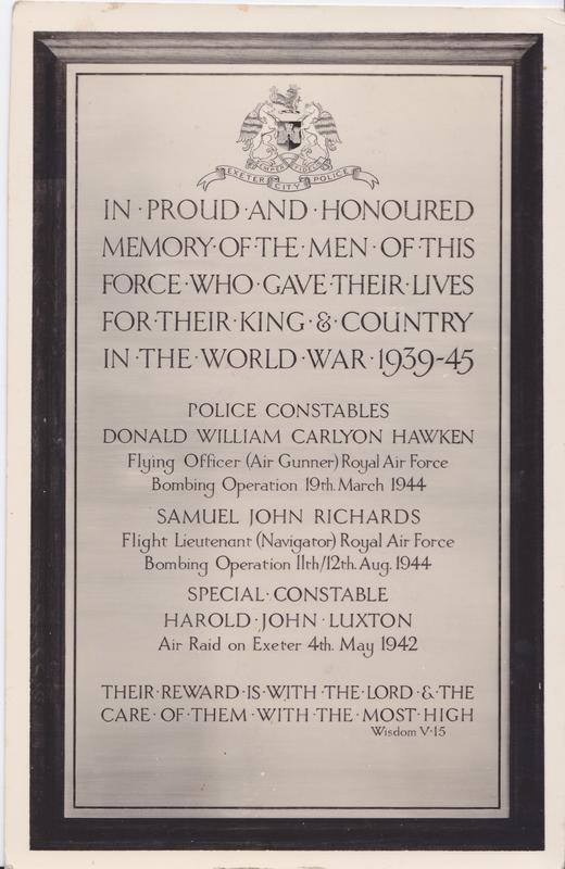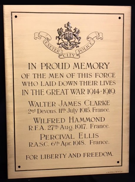 Exeter. The World War 1 plaque was previously located in the City Police