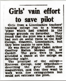 Cadet 3511044, RAF Cranwell, Royal Air Force. Died accidentally