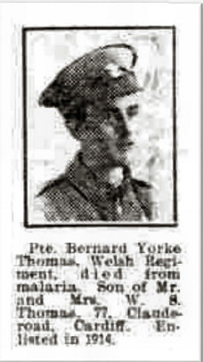 Died in Mesopotamia 29th June 1916. Born 22 April 1896 in Roath,