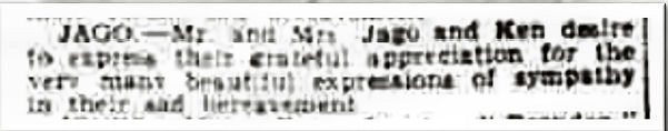 accident when two cars collided head on 20 June 1940. Aged 17.