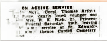 In 1939 he lived in Priness Street, Cardiff. Buried in CARDIFF (CATHAYS)