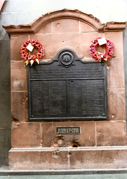 the Company crest above the inscription and a bronze tablet with a marble