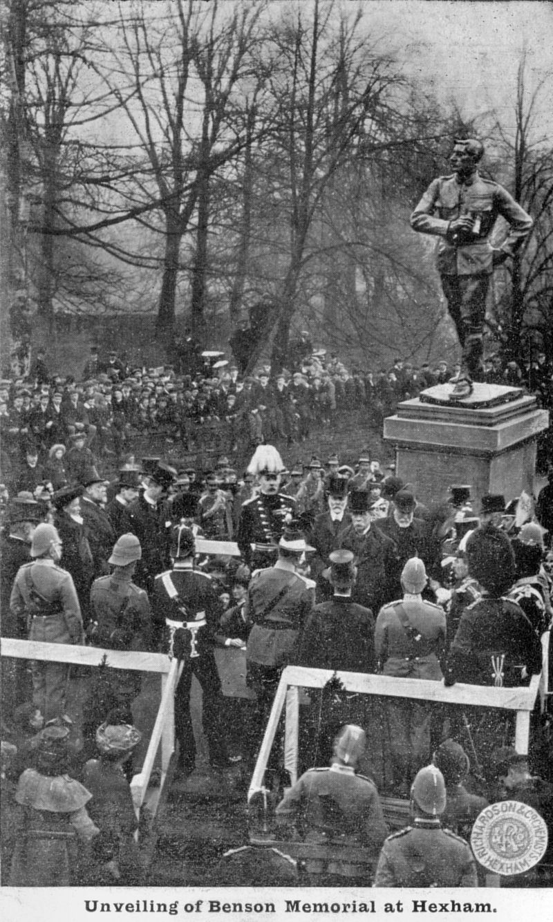 in Beaumont Street, Hexham. The memorial takes the form of a statue