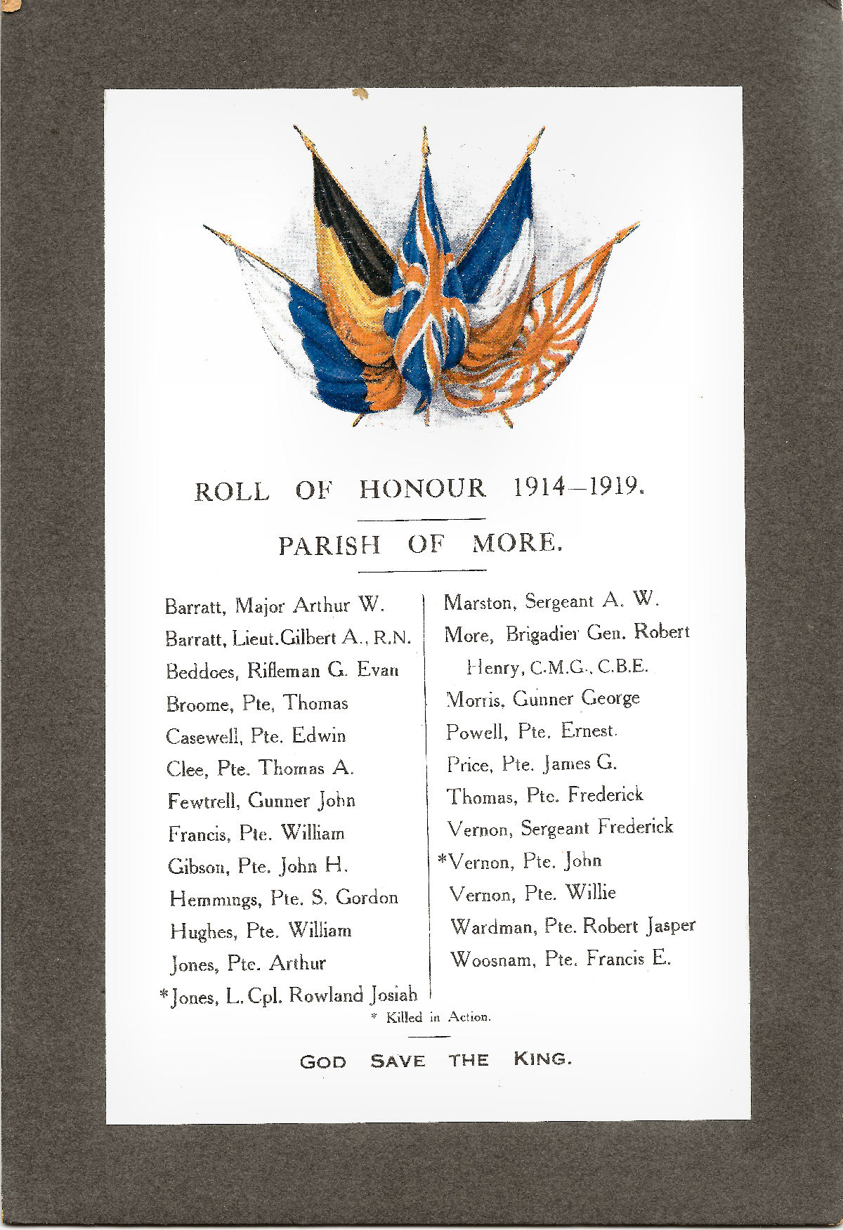 in action 16 April 1918. Aged 32. Born at More, Bishop's Castle,